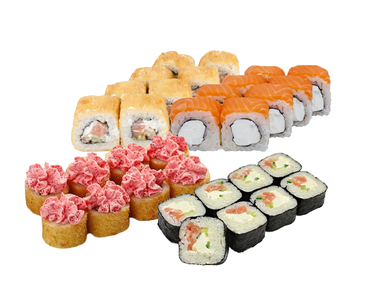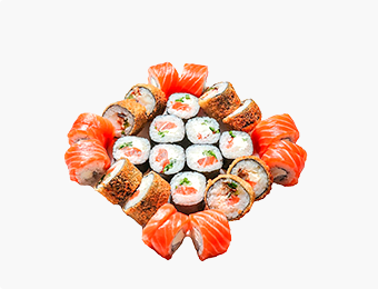1.000 кг, 32 кусочка Филадельфия лайт, гейша, сяке темпура, лава темпура.