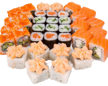1200 г. 40 шт.филадельфия с огурцом, гейша, калифорния с крабом, каспий, тайга.
