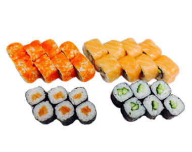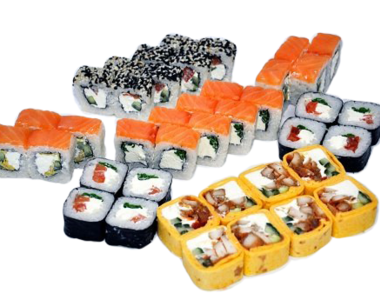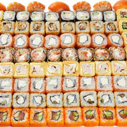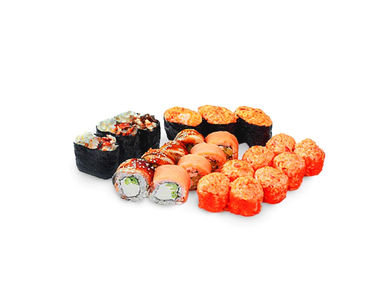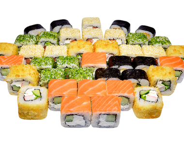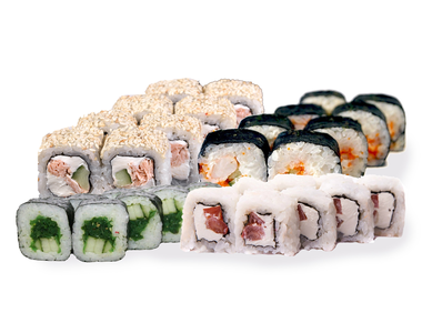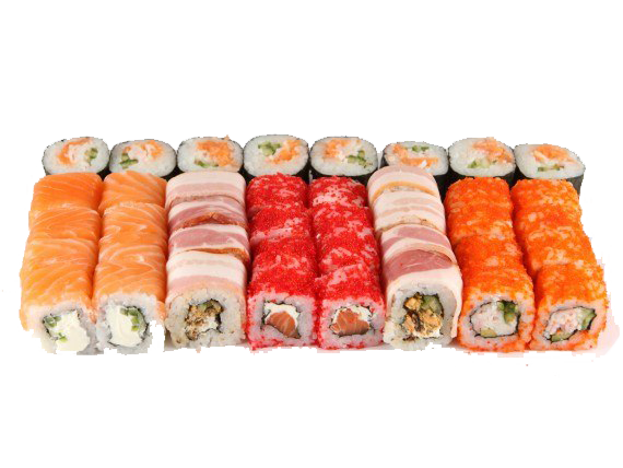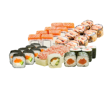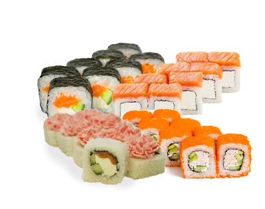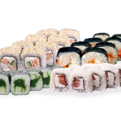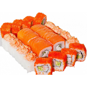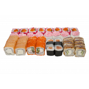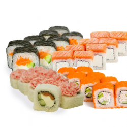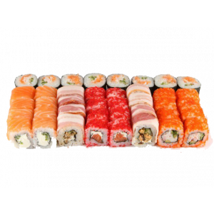 1.000 кг. 36 шт. калифорния с крабом, филадельфия с огурцом, лава с лососем, сяке маки, каппа маки.