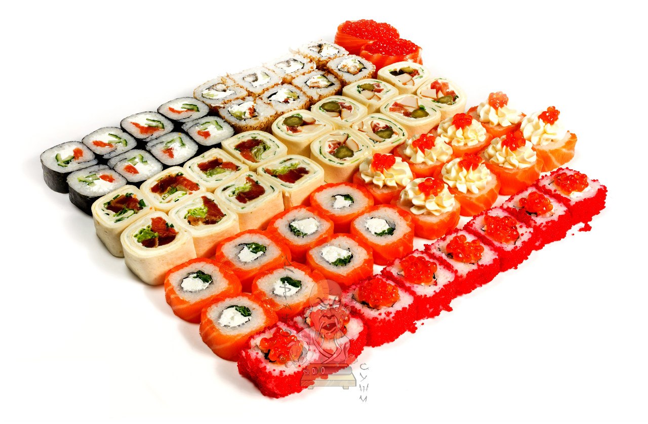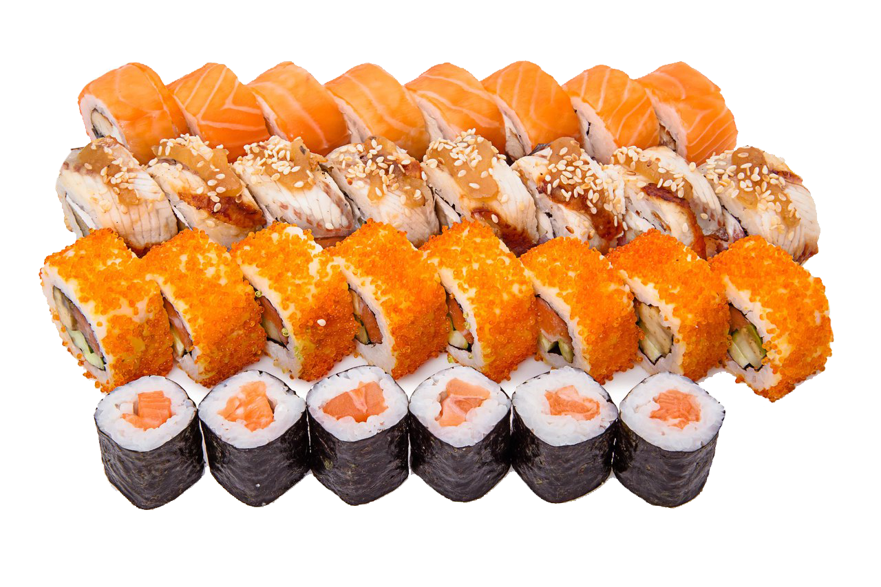 1.000 кг. 32 шт. филадельфия классическая, лава с лососем, гейша, сяке темпура.