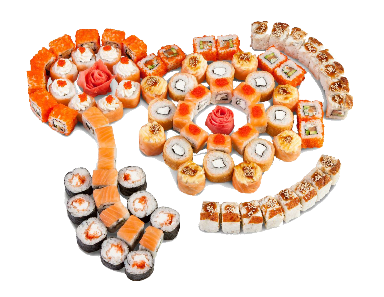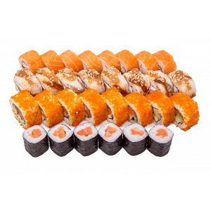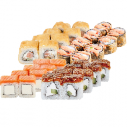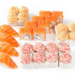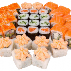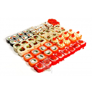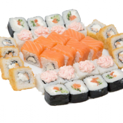 1300 г. 46 шт.филадельфия, унаги филадельфия, калифорния с крабом,сяке маки, лава с лососем, каспий.
