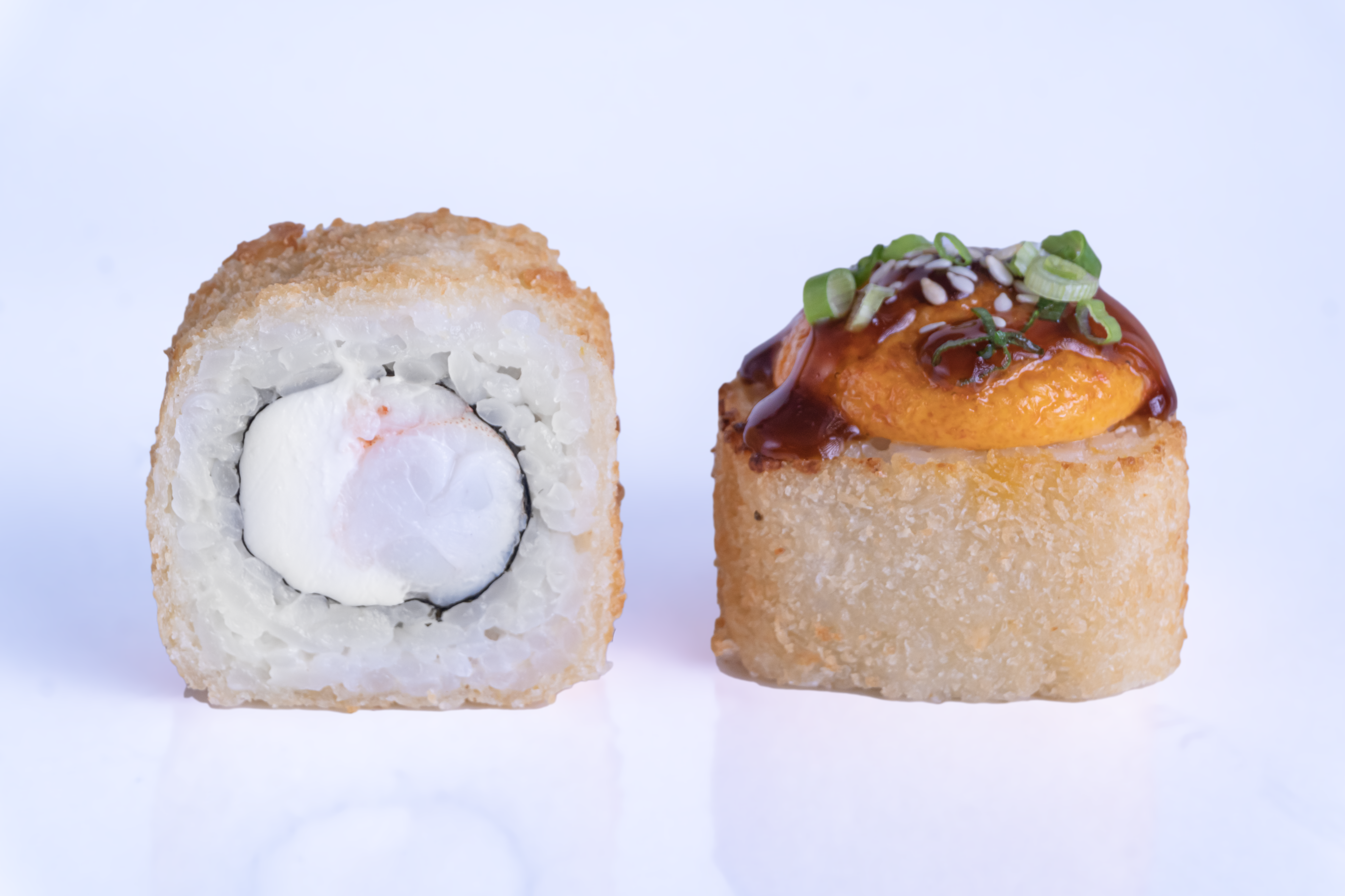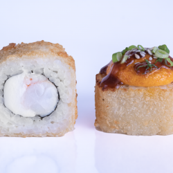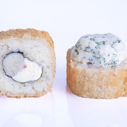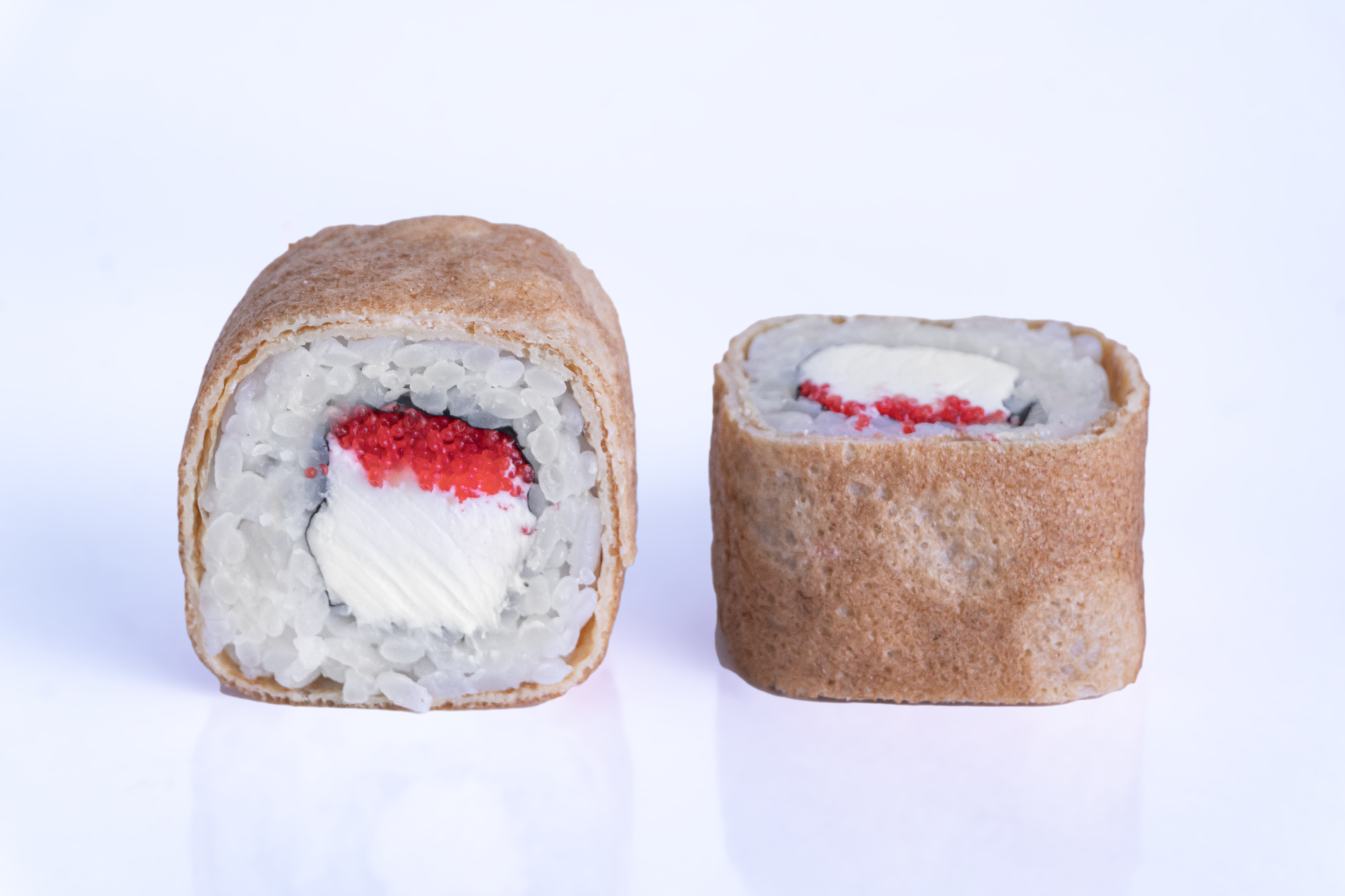 250 гр/8кус. Творожный сыр, икра летучей рыбки, яичный блинчик.
